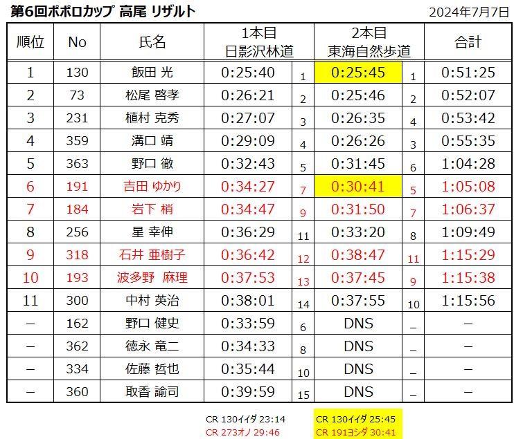 ※現地でお渡しした記録証に一部誤りがありました(幸い順位には影響ありませんでした)。以下が最終リザルトになりますので、ご確認よろしくお願いします。
